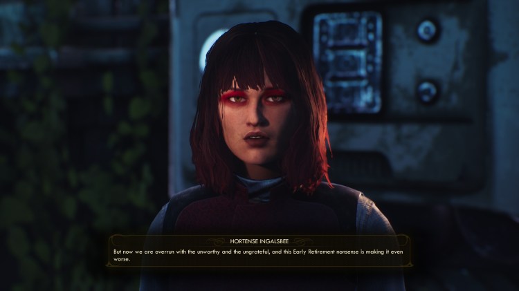 Race: This game is set in the future with futuristic colony worlds so its quite diverse. Unsurprising, given the setting. Though one character, a woman named Hortense Ingalsbee, is very anti-immigrant and anti-poor and was quite thrilled to learn that the poor were (spoiler) being gunned down by the one of the corporations so they wouldn’t have to feed them anymore. So, I must give it a point for its obvious “people who are for immigration control are evil” propaganda. Score: 1 out of 5